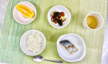 ご飯さわら焼きさつまいもとひじきに物オレンジ…