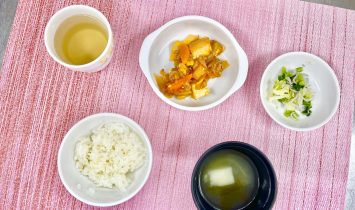 豚丼さつま芋のレモン煮豆腐スープ…