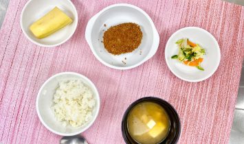 ご飯メンチカツ野菜のおかか和え豆腐みそ汁バナナ…