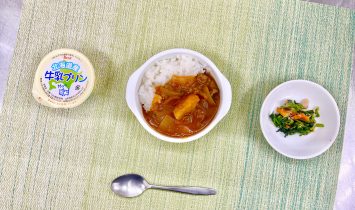 ハヤシライスほうれん草のツナ和え牛乳プリン…