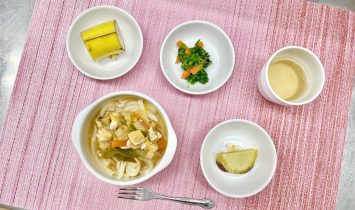 みそ煮込みうどんほうれんそうのごま和えさつま芋のさくさく揚げバナナ…