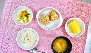 ご飯鶏のから揚げキャベツのゆかり和えみそ汁バナナ…