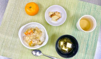 中華丼ベイクドじゃが豆腐すまし汁みかん…