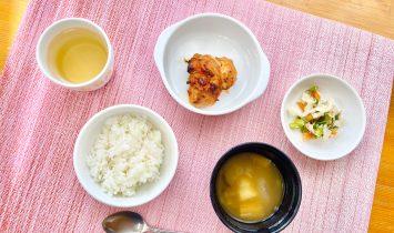 ご飯タンドリーチキン小松菜のごま和えみそ汁…