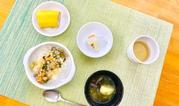 ご飯厚揚げのケチャップ煮小松菜のしらす和えコーンスープ…