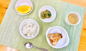 ご飯かじきの香り焼き納豆和えオレンジ…